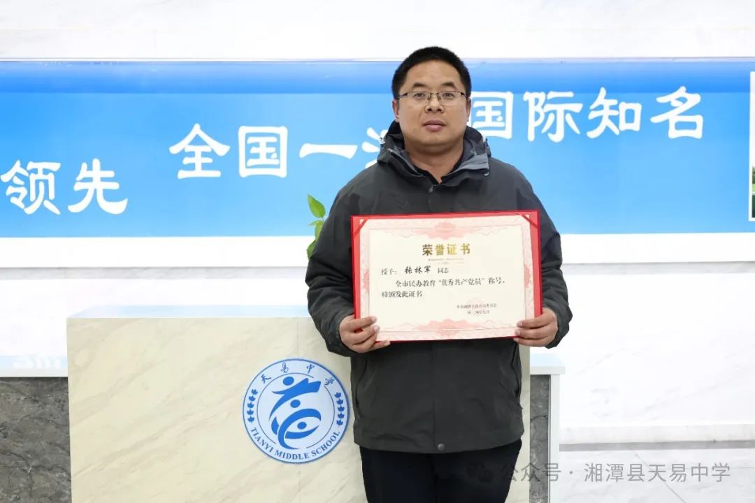 一个党员就是一面旗帜,一个支部就是一座堡垒。在中国共产党成立103周年、新中国成立75周年之际,中共湘潭市教育局委员会授予天易中学党支部“先进基层党组织”荣誉称号,授予张林军同志“优秀共产党员”荣誉称号,授予罗迈同志“优秀党务工作者”荣誉称号。