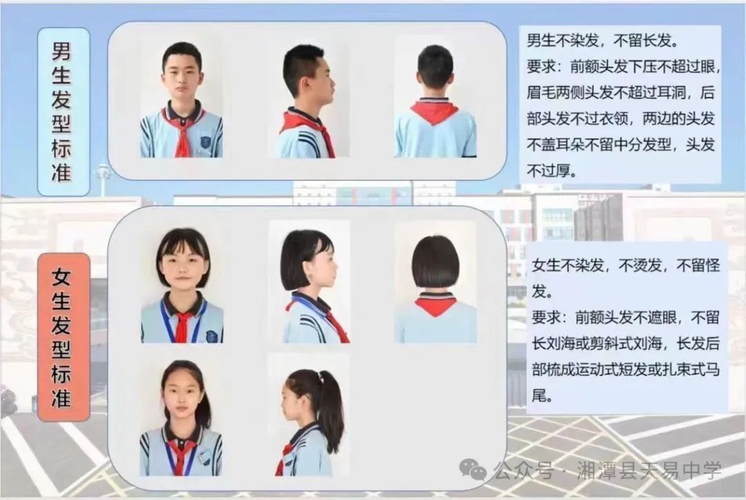 3.全体学生应保持整洁得体的学生形象:发型要求男生短发(前不遮眉、侧不掩耳、后不触领),女生束发整齐;禁止染烫发、留怪异发型。日常做到不化妆、不美甲、不佩戴饰物,双手保持清洁不留长指甲。特别提醒不得纹身或使用临时纹身贴纸。请同学们共同维护校园文明风貌。