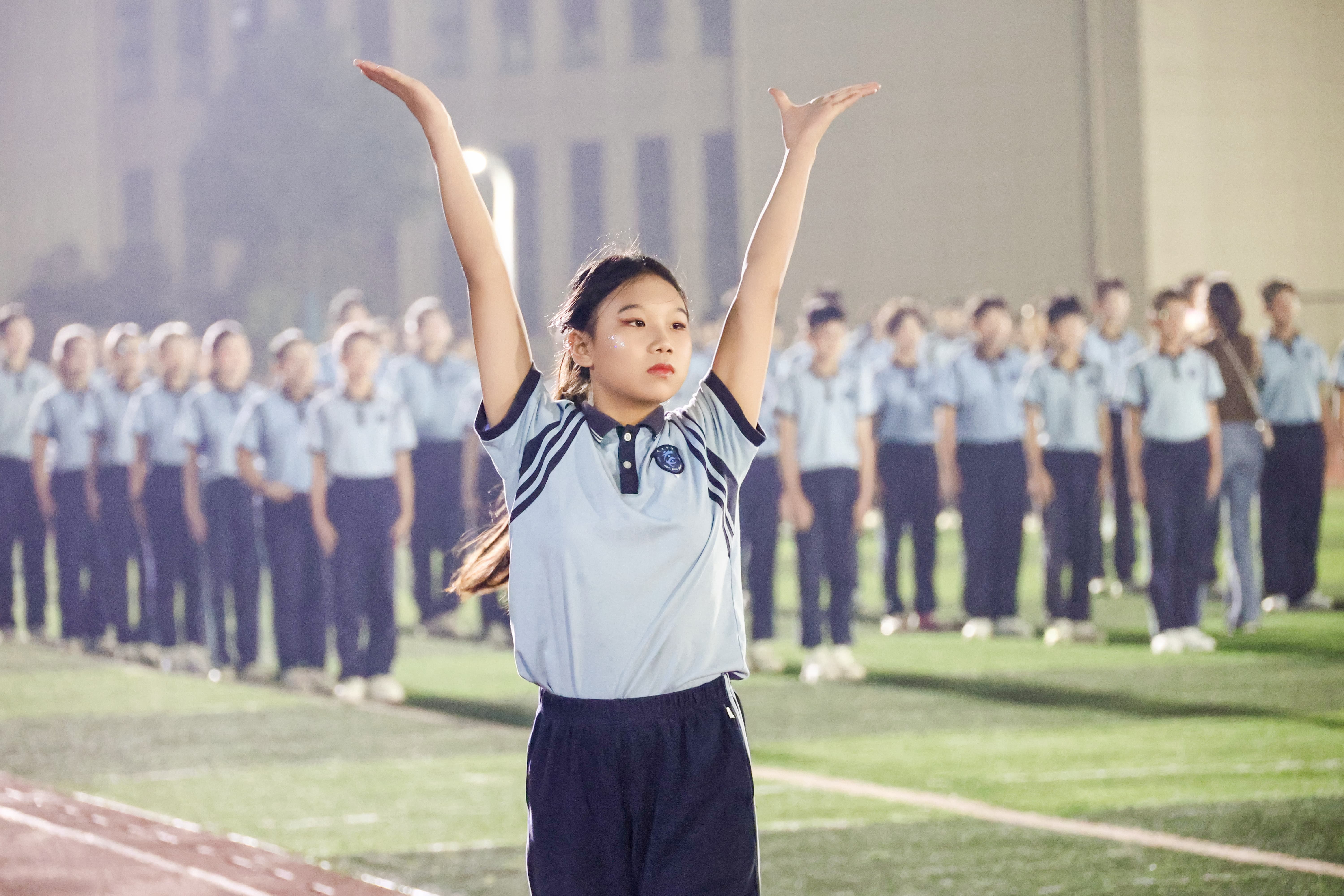 七年级队伍,如初生之朝阳,充满朝气。在《舞动青春》的节奏中,他们动作标准,节奏分明,将青春的活力与无限的可能,融入每一个伸展与跳跃。