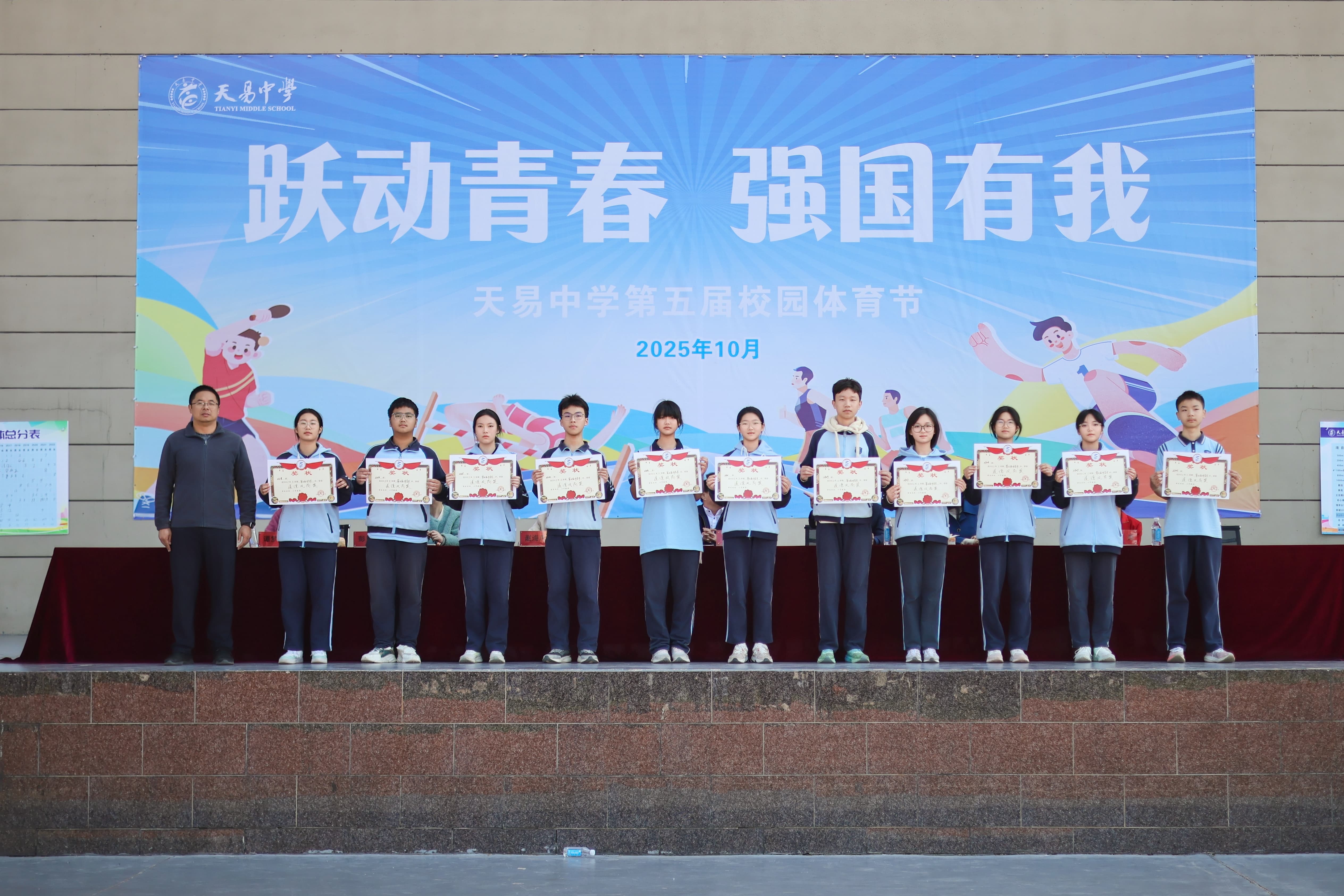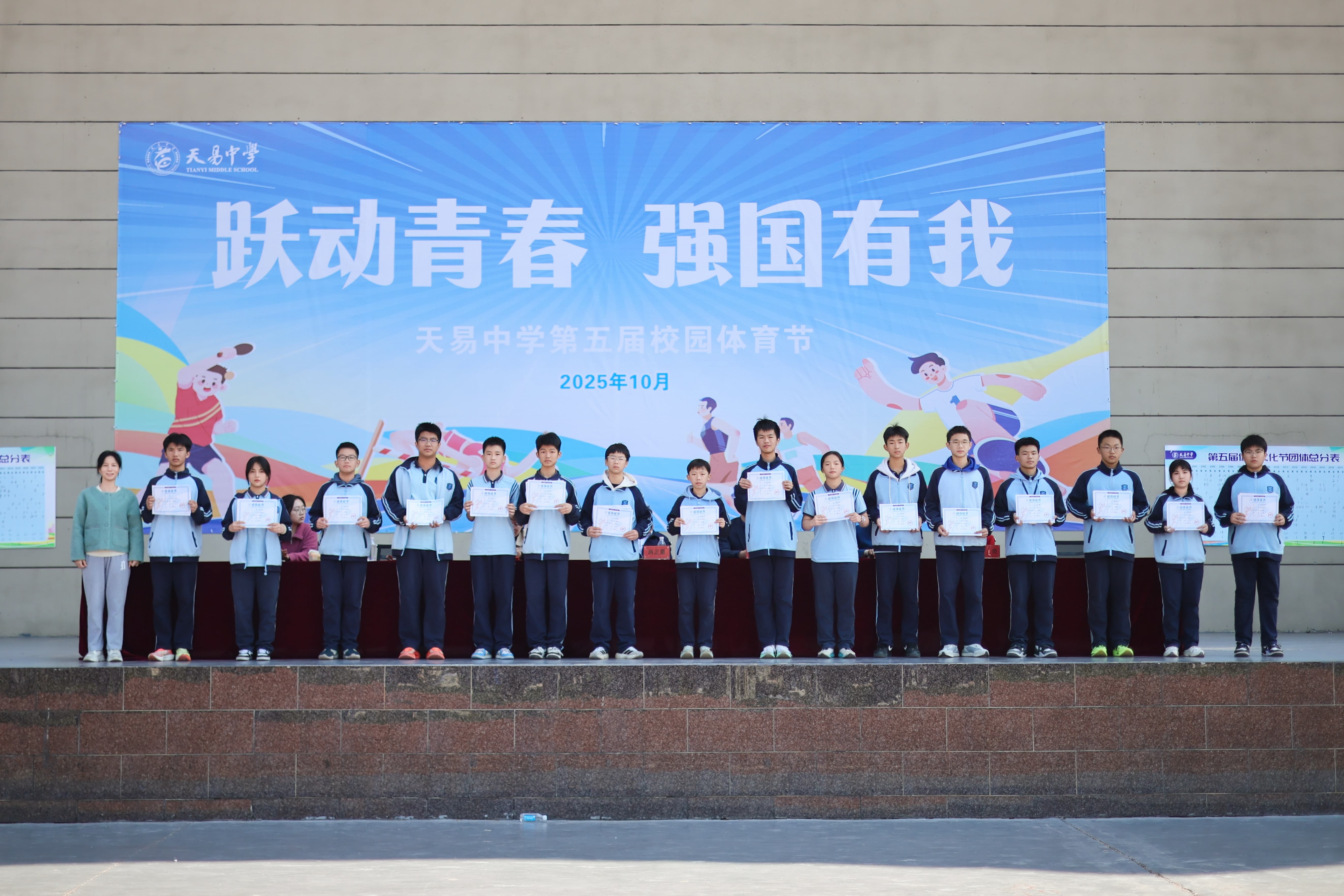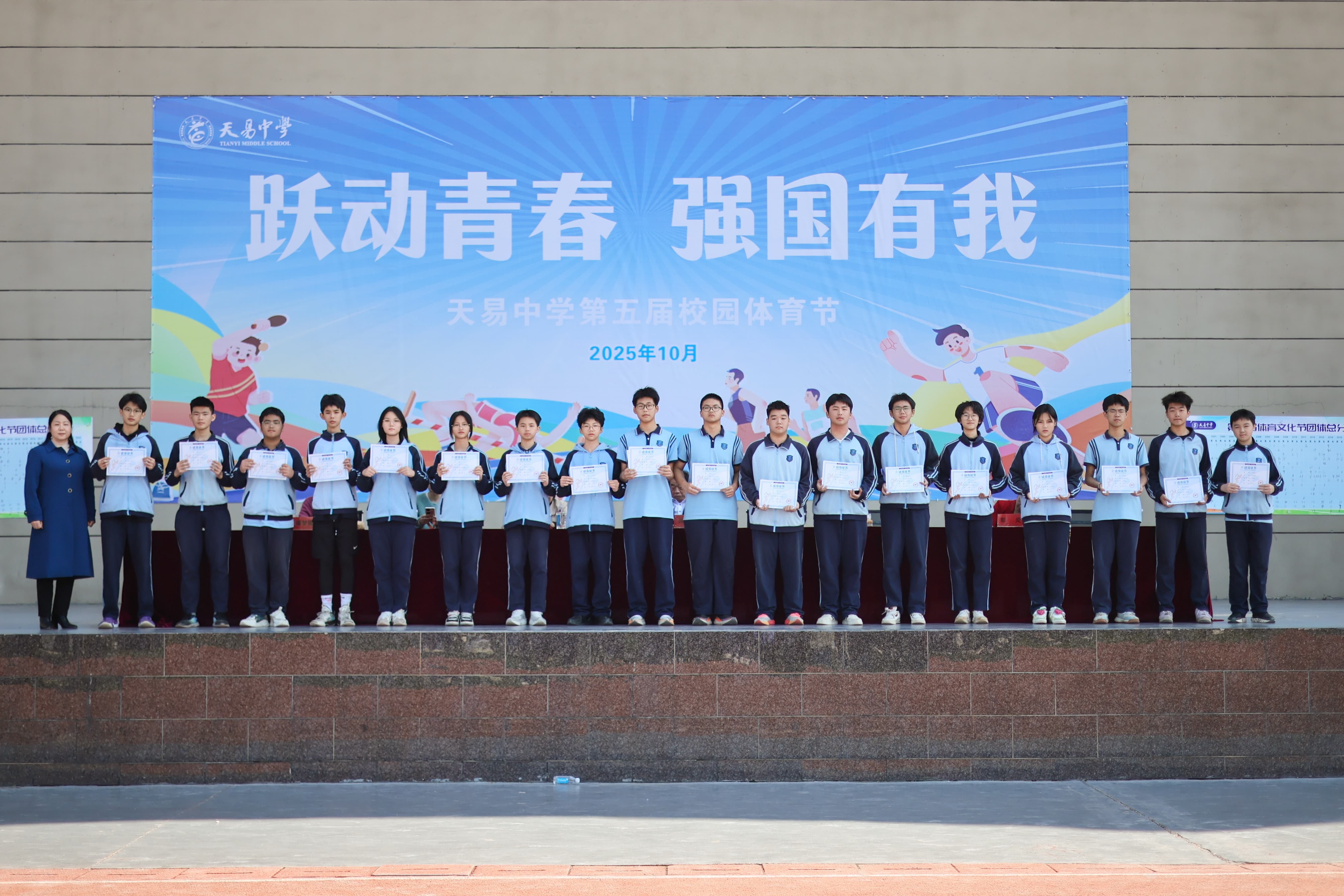 从夏奥到冬奥,中华民族的体育梦想从未止步;从金秋到下一个金秋,天易中学的体育传奇仍在续写。第五届体育节虽已落幕,但“跃动青春,强国有我”的誓言已深深烙在每个天易学子的心中。赛道有终点,拼搏无止境。愿所有天易学子带着这份热血与荣耀,在未来的学习与生活中,继续奔跑,永不停歇!