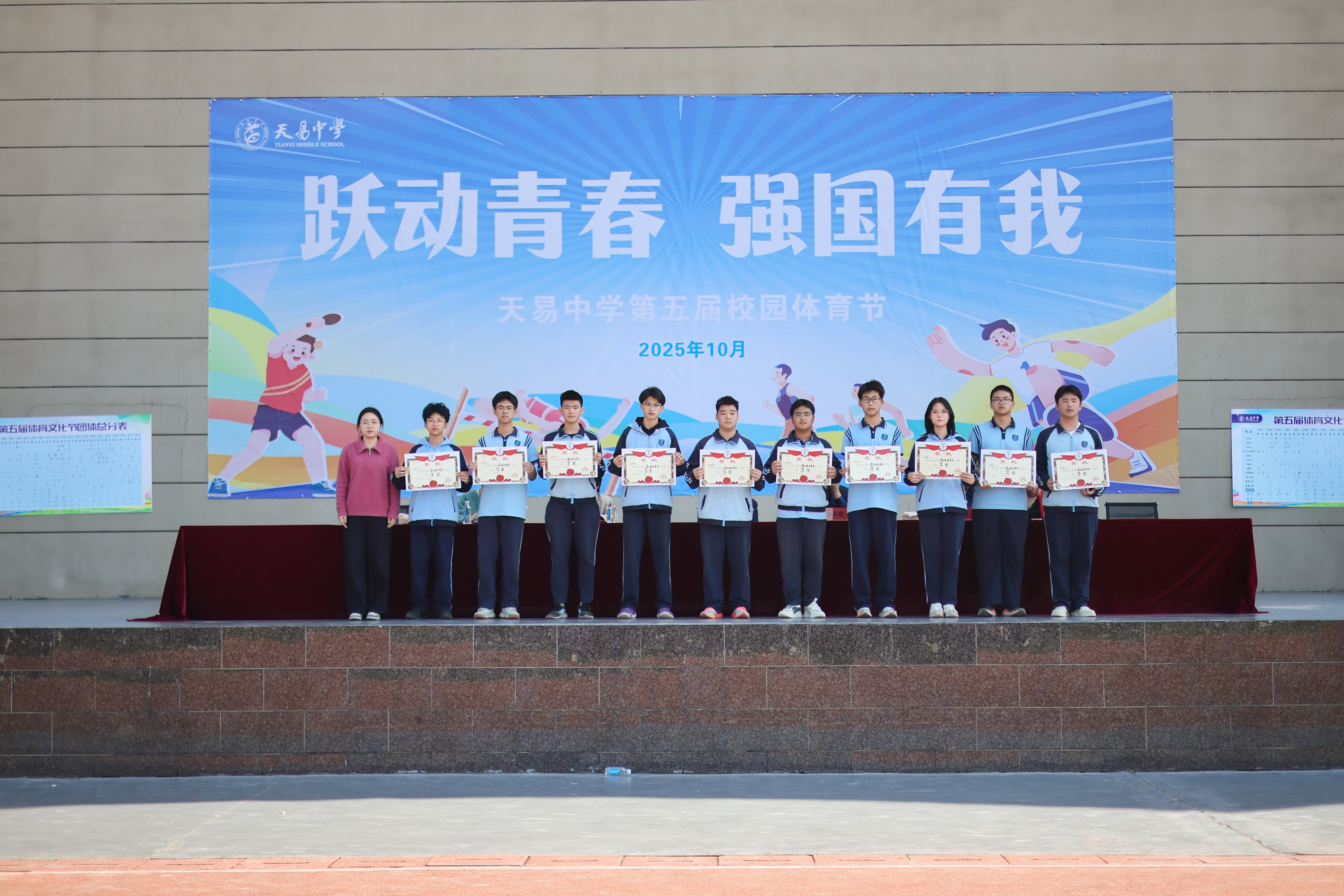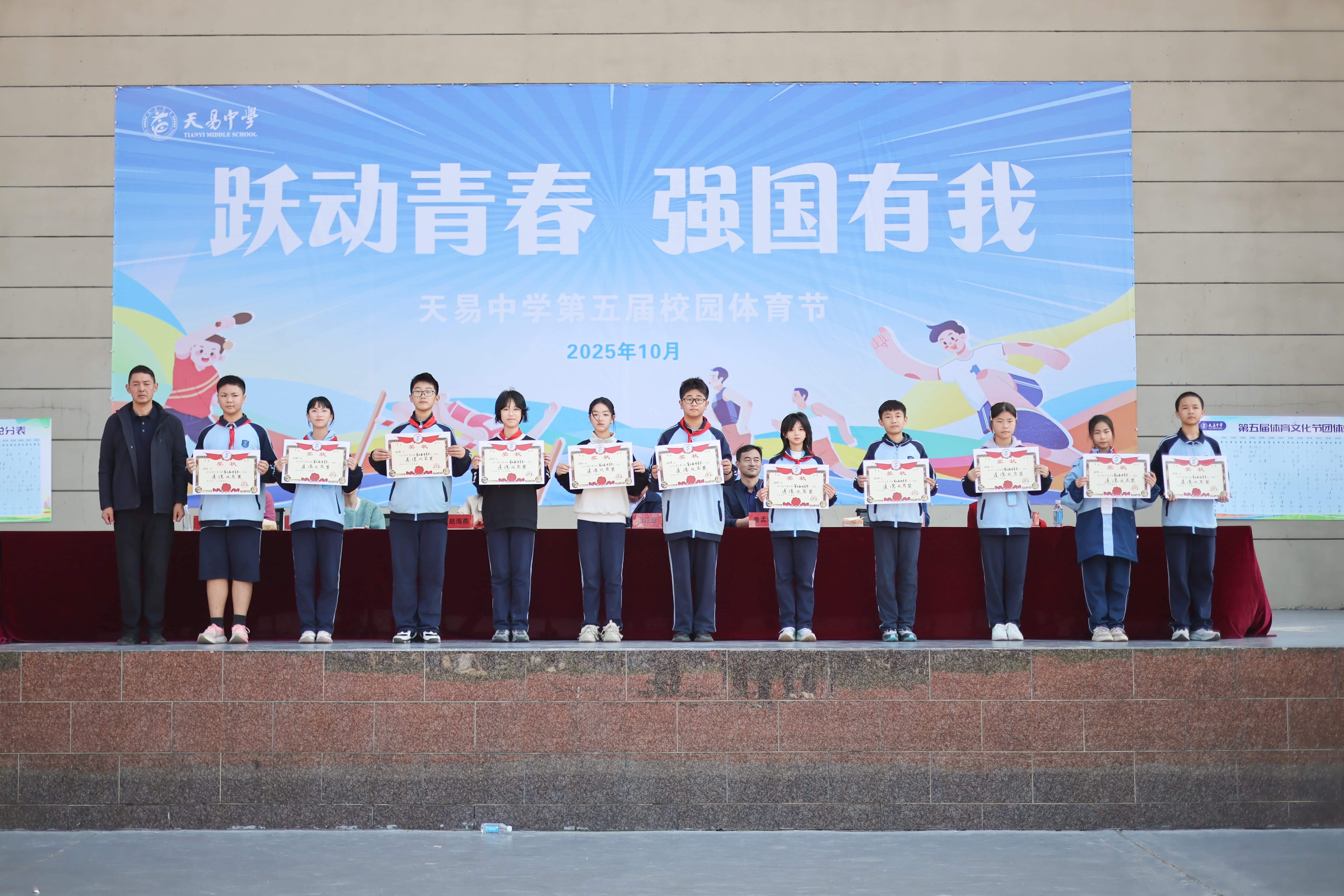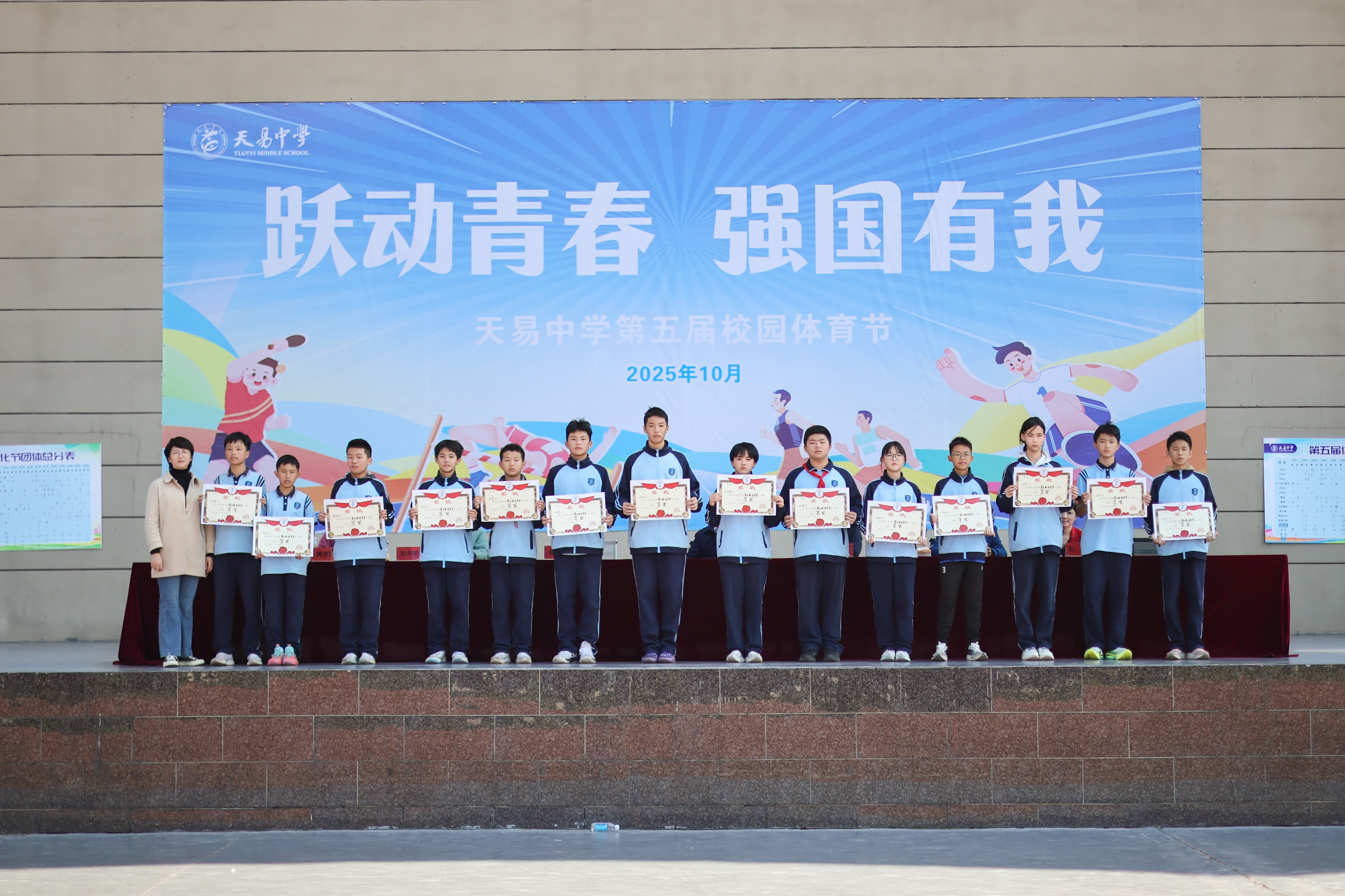 从夏奥到冬奥,中华民族的体育梦想从未止步;从金秋到下一个金秋,天易中学的体育传奇仍在续写。第五届体育节虽已落幕,但“跃动青春,强国有我”的誓言已深深烙在每个天易学子的心中。赛道有终点,拼搏无止境。愿所有天易学子带着这份热血与荣耀,在未来的学习与生活中,继续奔跑,永不停歇!