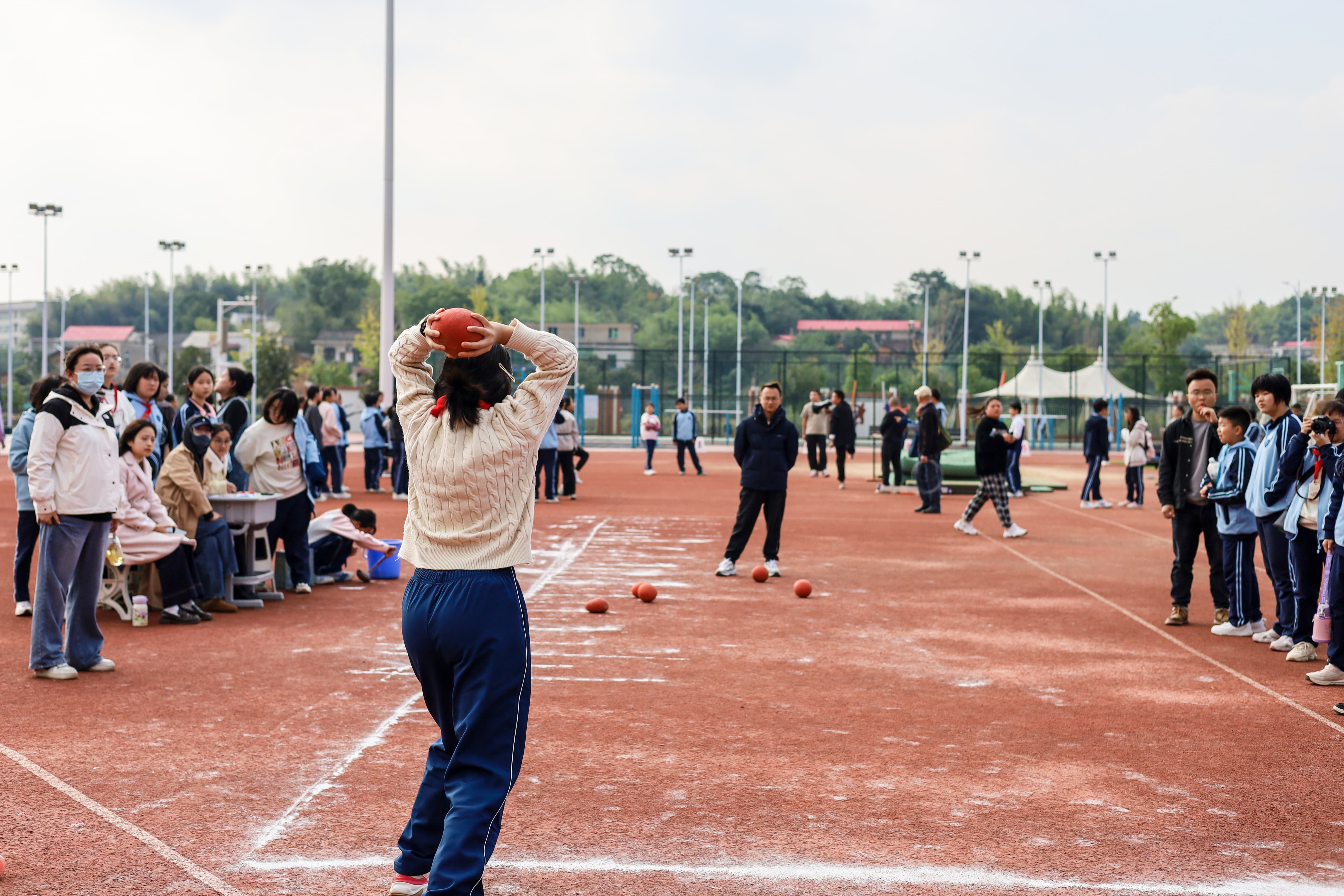 实心球赛场,力量与技巧完美结合。沉甸甸的球体在空中画出充满力量的轨迹,承载着学子们掷向远方的梦想。